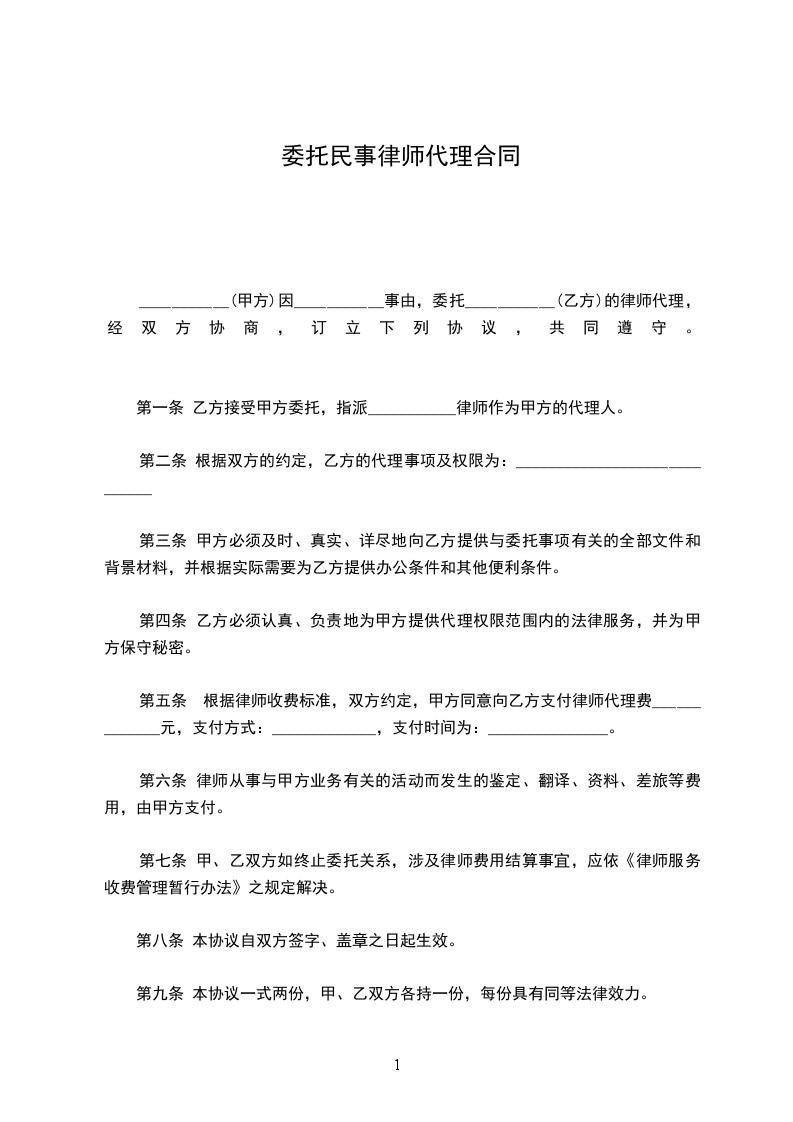 甲方因一案,委托乙方代理,经双方协议,订立本合同。