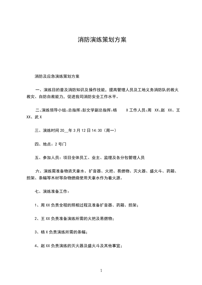 一.演练地址:__________有限公司车间门口