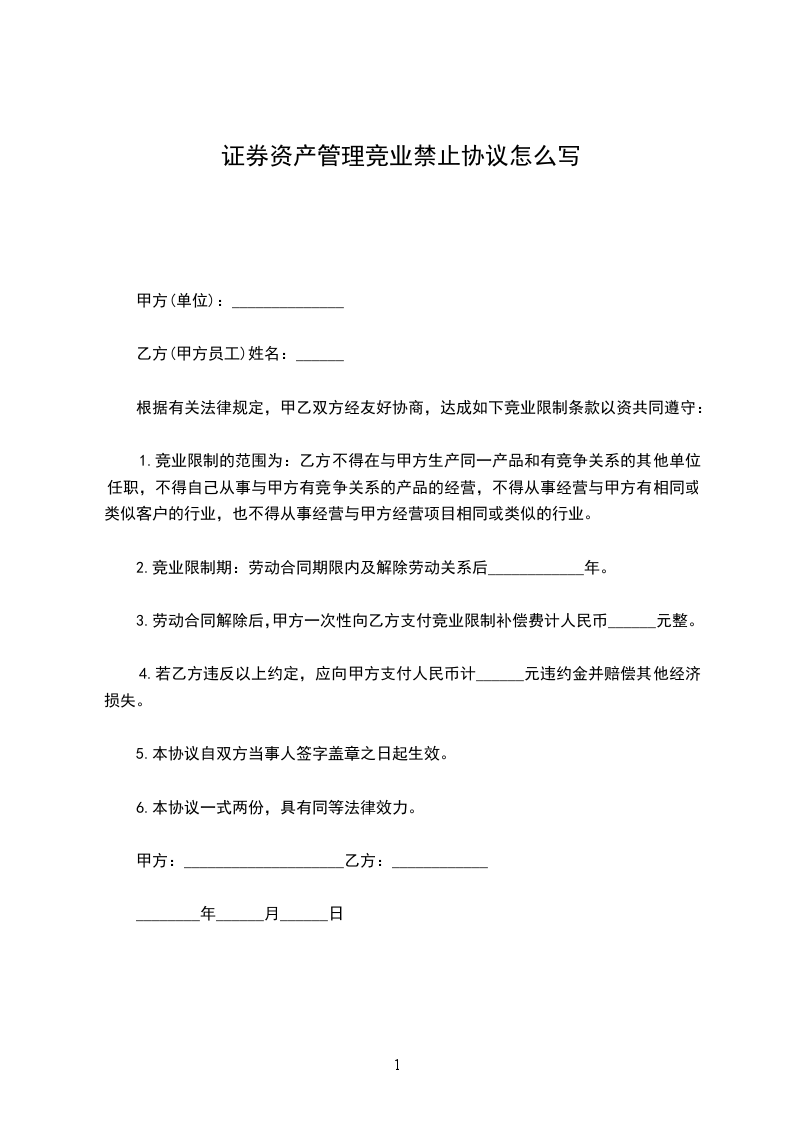 怎么写证券交易员竞业禁止协议