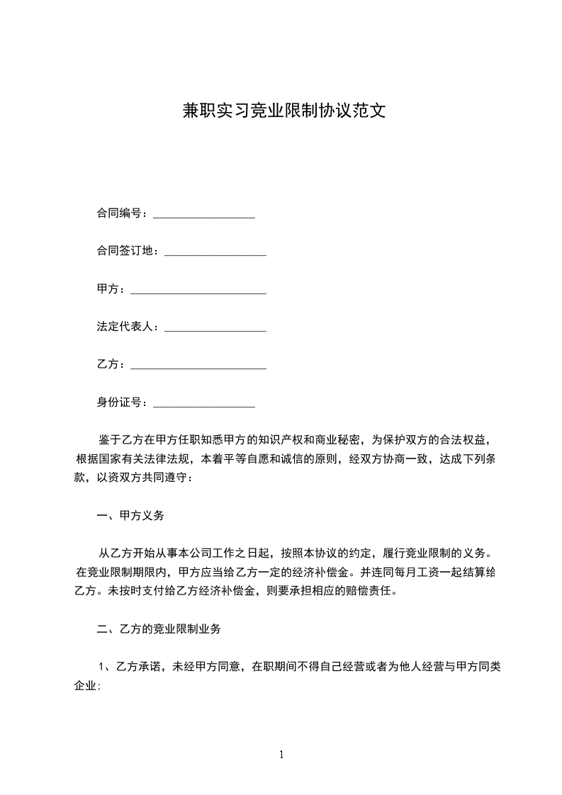 鉴于乙方在甲方任职知悉甲方的知识产权和商业秘密,为保护双方的合法权益,根据国家有关法律法规,本着平等自愿和诚信的原则,经双方协商一致,达成下列条款,以资双方共同遵守: