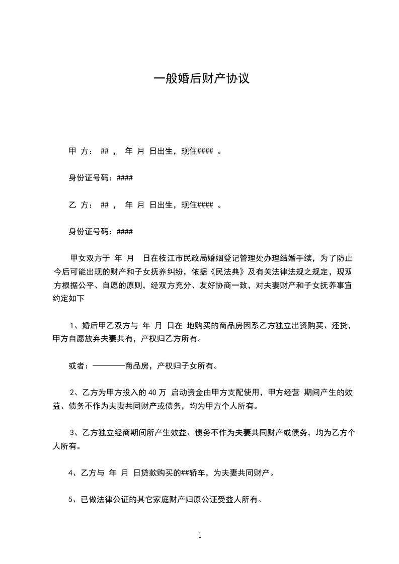 甲女双方于 年 月 日在枝江市民政局婚姻登记管理处办理结婚手续,为了防止今后可能出现的财产和子女抚养纠纷,依据《民法典》及有关法律法规之规定,现双方根据公平、自愿的原则,经双方充分、友好协商一致,对夫妻财产和子女抚养事宜约定如下
