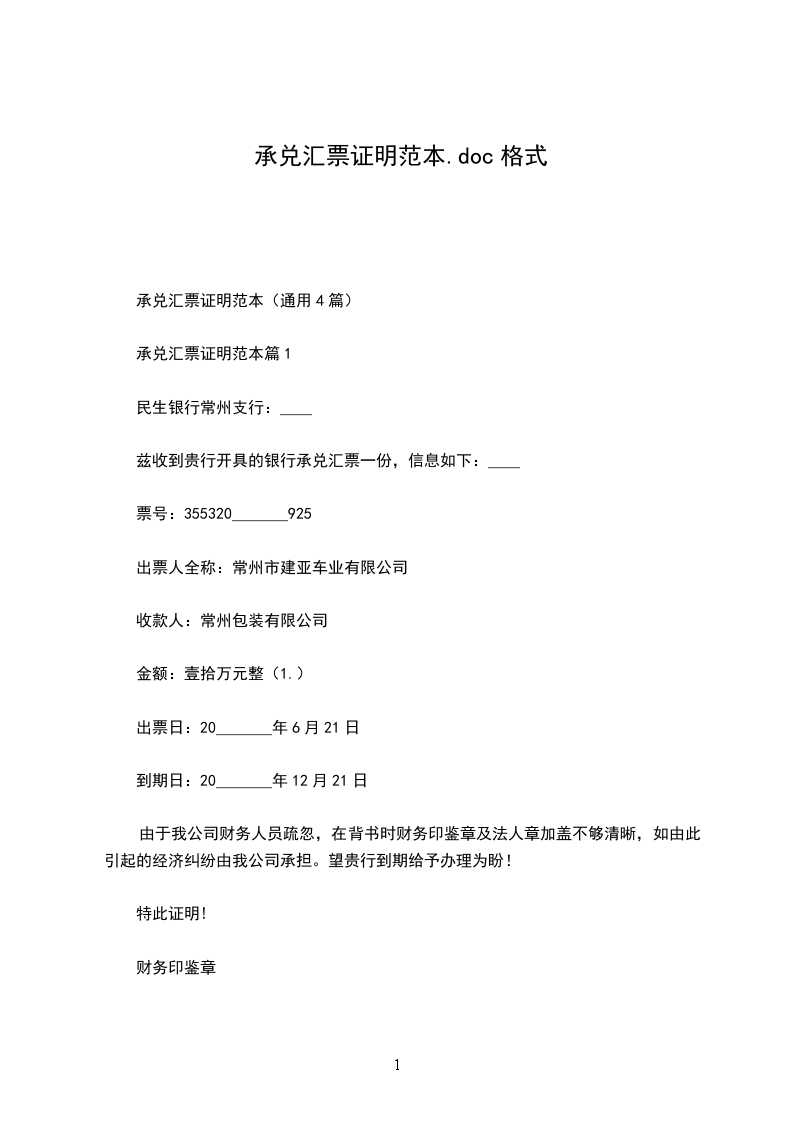 银行承兑汇票公司证明格式