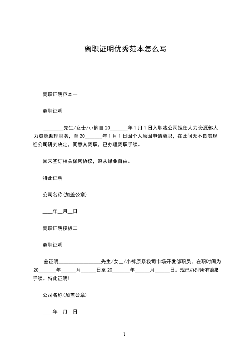 ________先生/女士/小裤自20_______年1月1日入职我公司担任人力资源部人力资源助理职务,至20_______年1月1日因个人原因申请离职,在此间无不良表现,经公司研究决定,同意其离职,已办理离职手续。