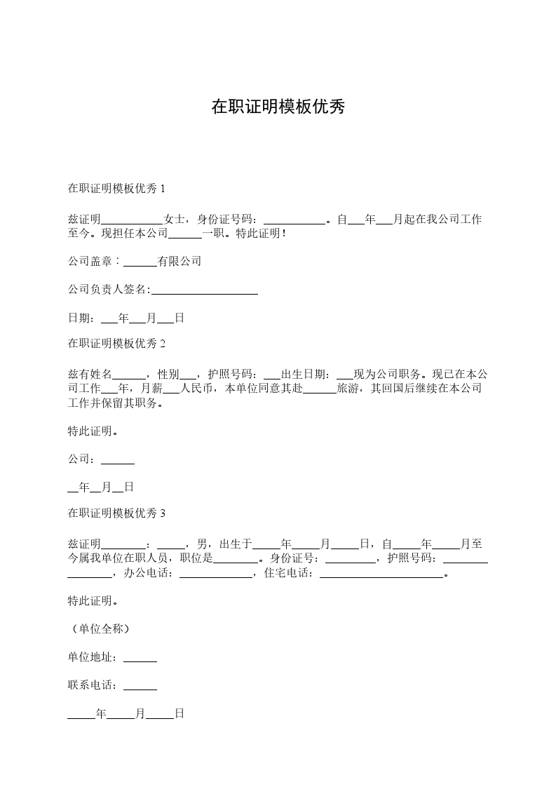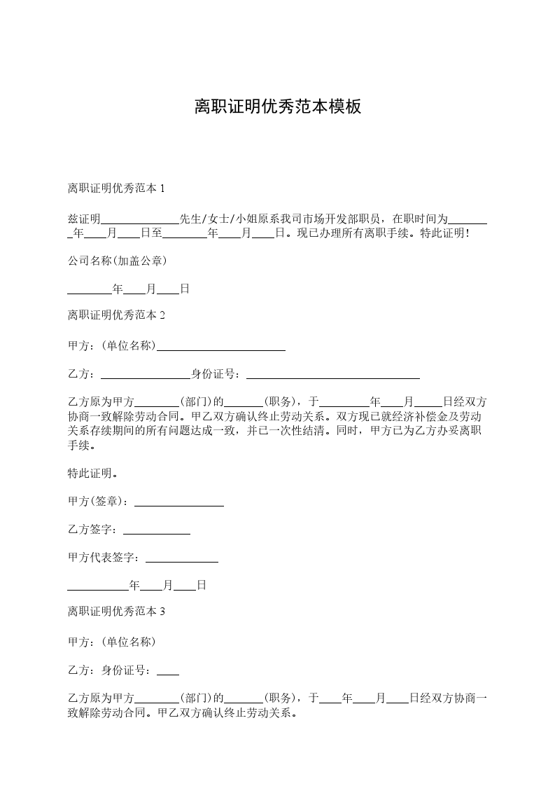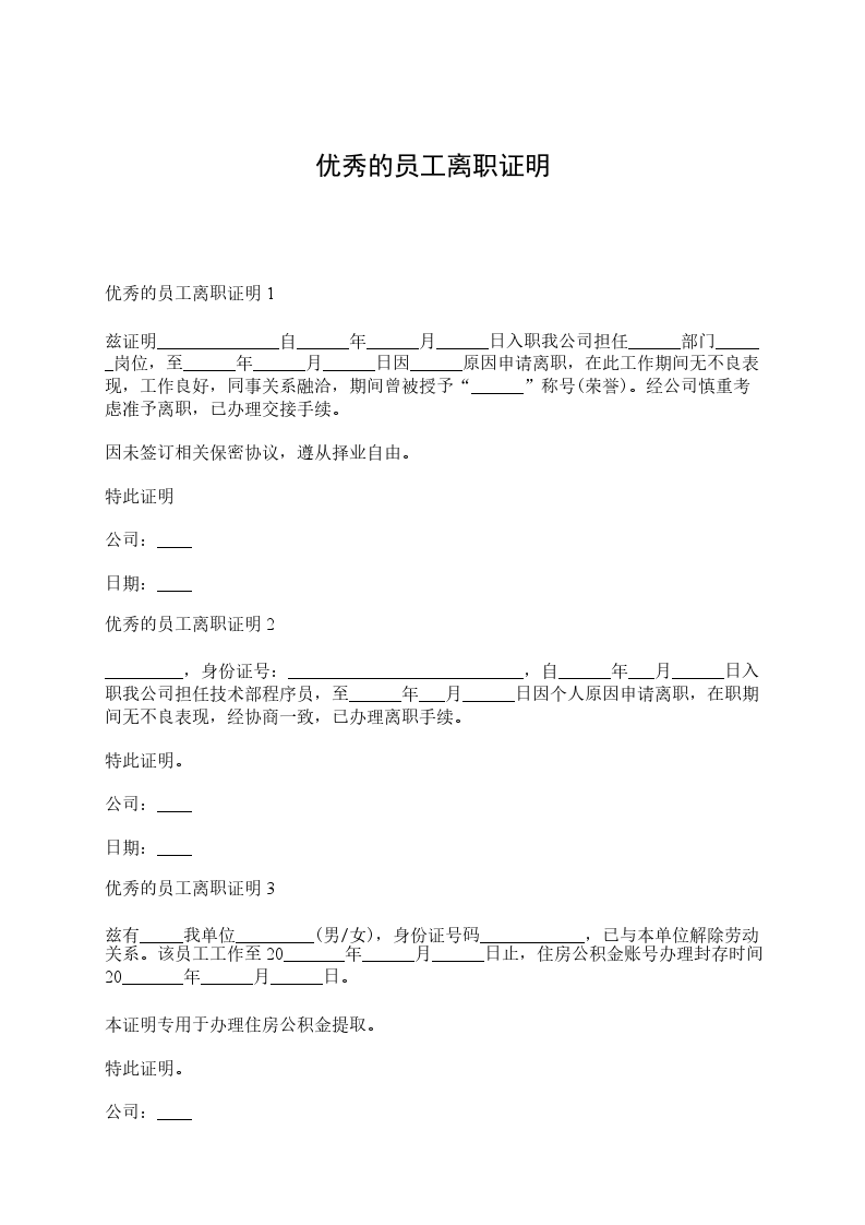 离职证明范本一