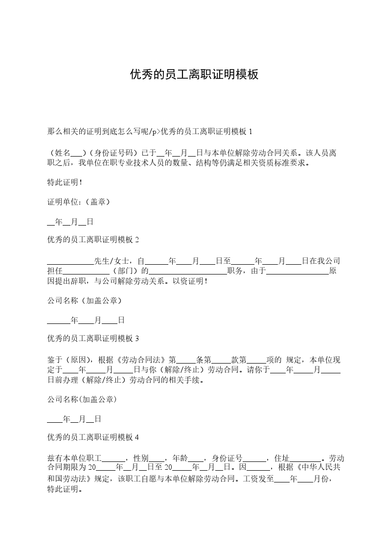 离职证明模板二