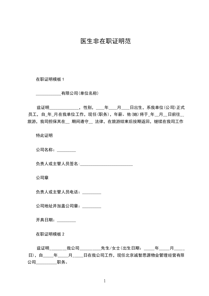 兹证明________我公司__________先生/女士(出生日期:_____年_____月_____日),自_____年_____月_____日在我公司工作,现任北京诚智思源物业管理经营有限公司__________职务。