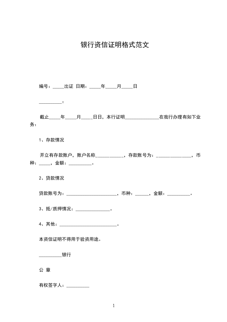 本资信证明不得用于验资用途。