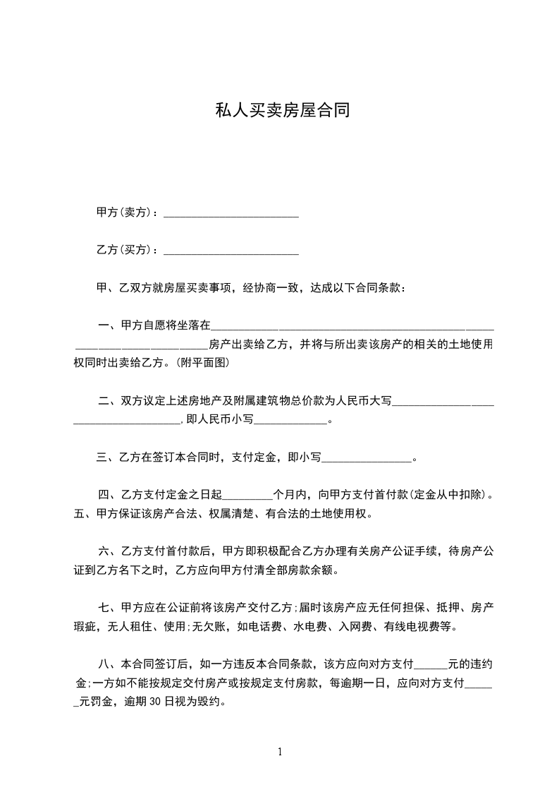 甲、乙双方于________年________月________日签订了《房屋买卖合同》。甲、乙双方在平等、自愿、协商一致的基础上达成如下协议,共同遵守: