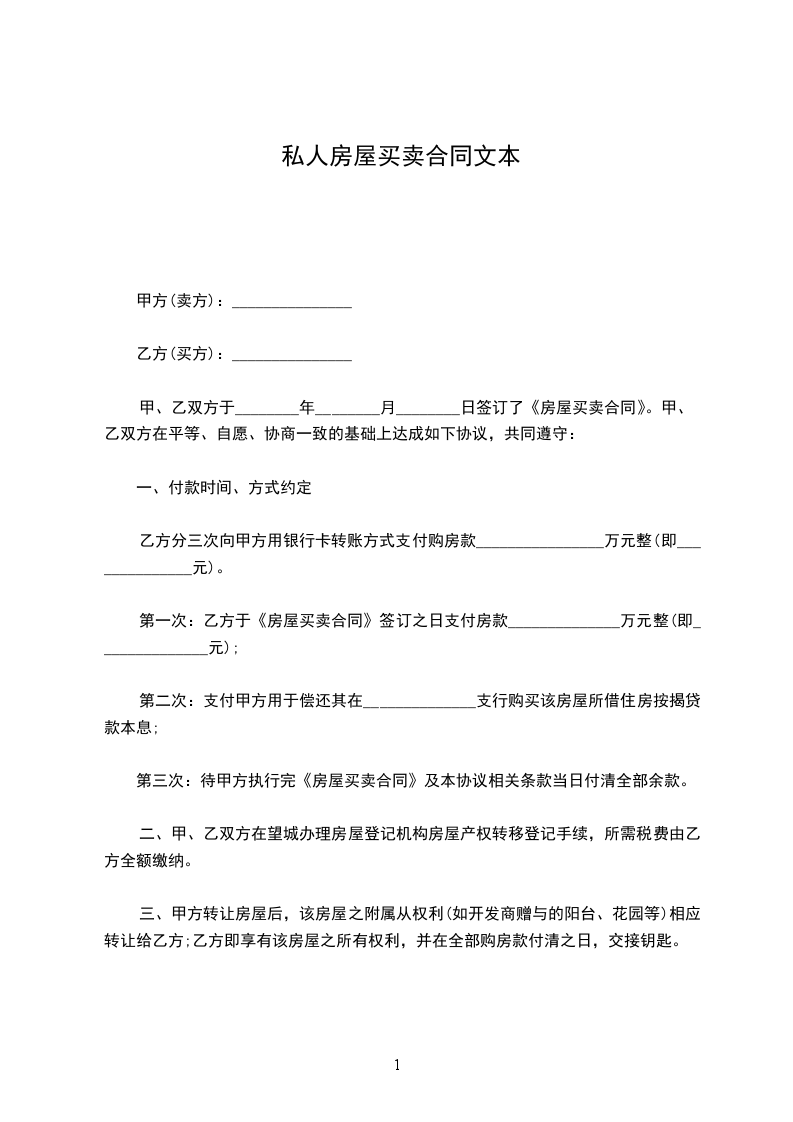 第二次:支付甲方用于偿还其在______________支行购买该房屋所借住房按揭贷款本息;