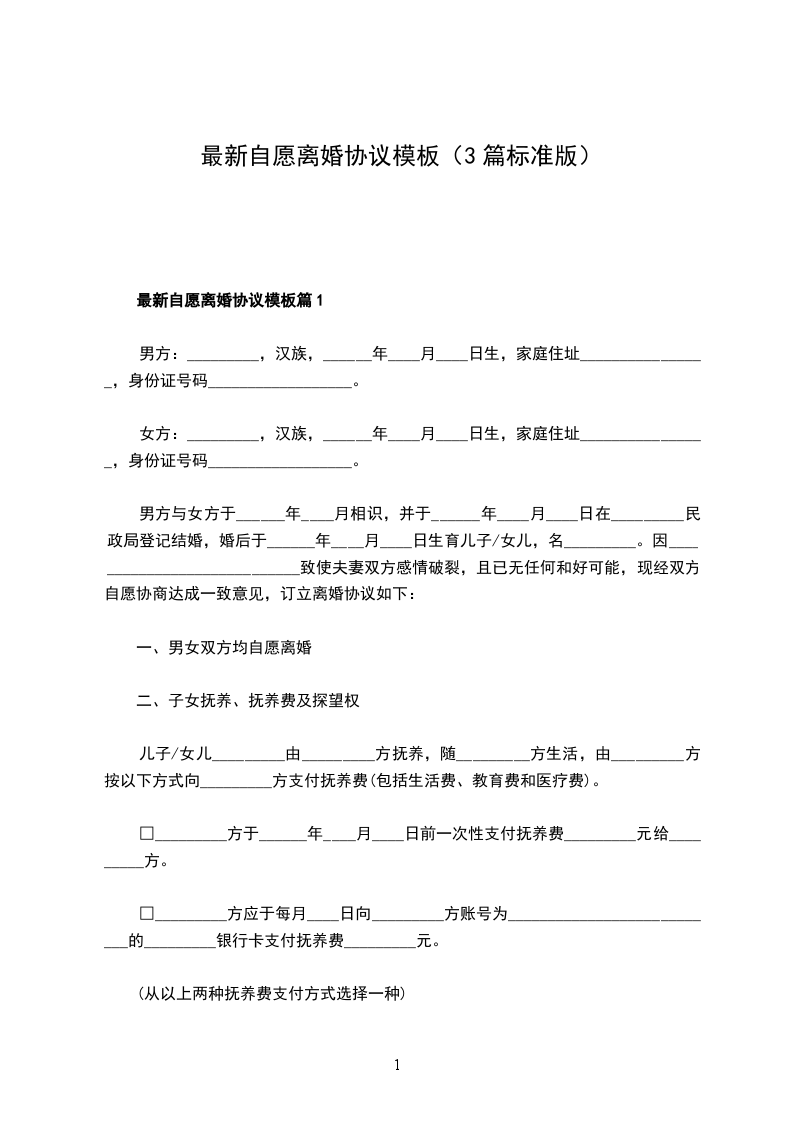最新的协议离婚的标准模板