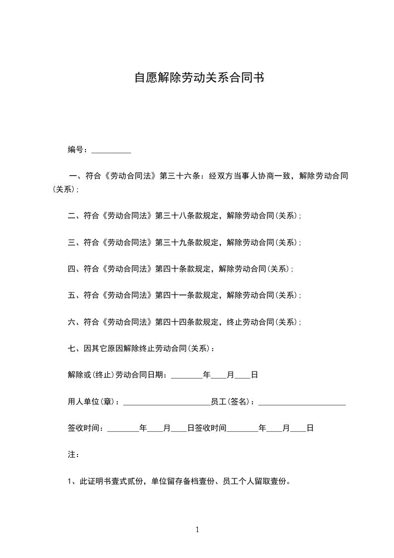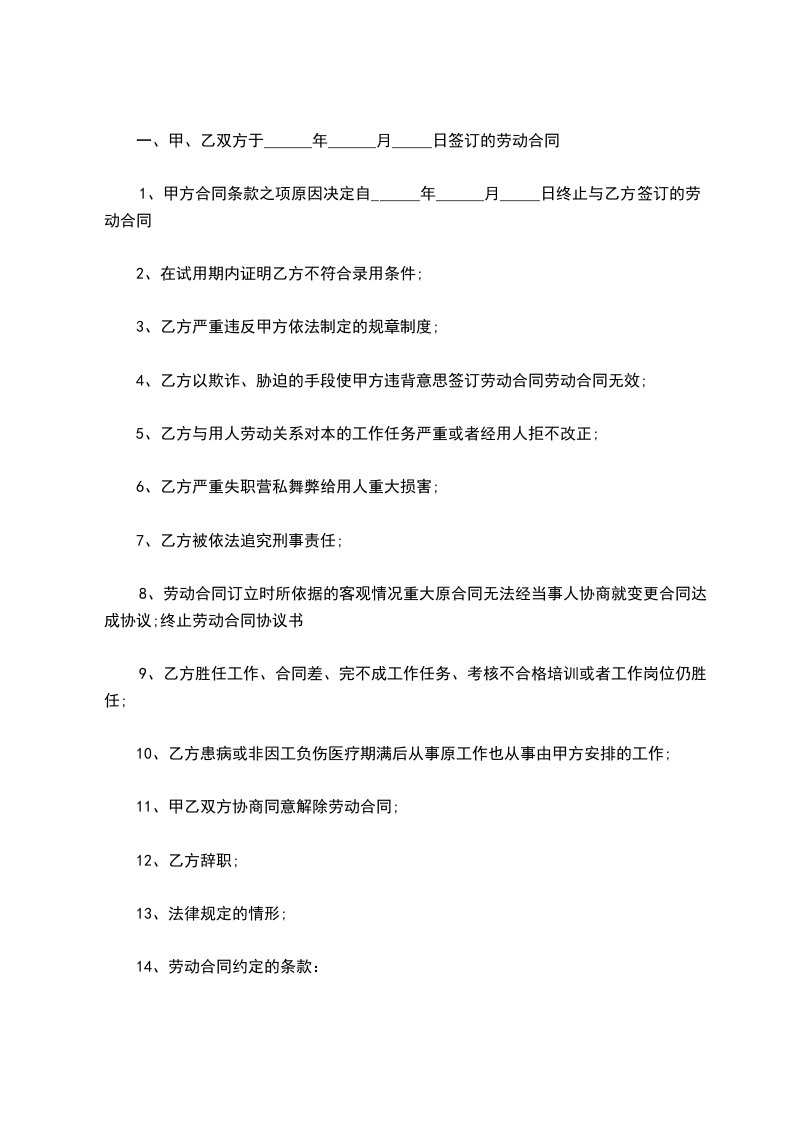 解除合同主要原因:_____________________________________