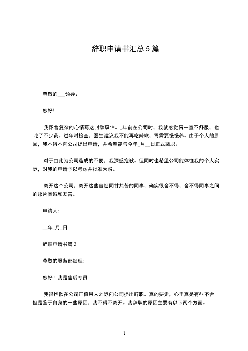 我怀着复杂的心情写这封辞职信。_年前在公司时,我就感觉胃一直不舒服,也吃了不少药。过年时检查,医生建议我不能再吃辣椒,胃需要慢慢养。由于个人的原因,我不得不向公司提出申请,并希望能与今年_月__日正式离职。