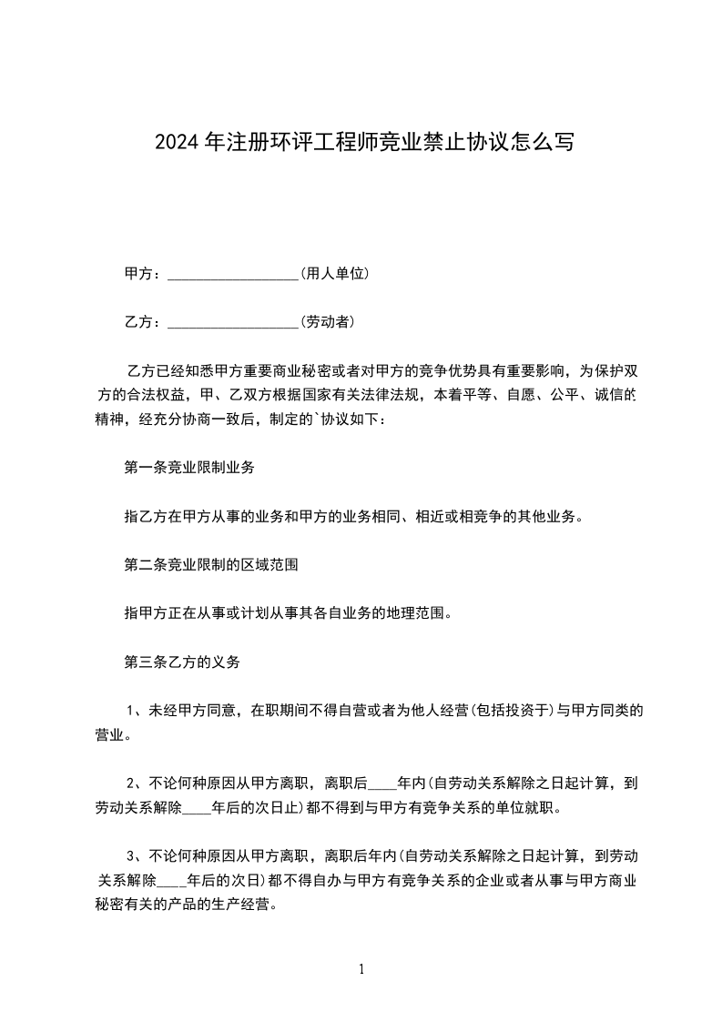 2、不论因何种原因从甲方离职,离职后____年内(自劳动关系解除之日起计算,到劳动关系解除____年后的次日止)都不得到与甲方有竞争关系的单位就职。上述单位包括但不限于下列单位:同行业、与本公司有竞争关系且本公司认为已经成为或者可能成为竞争对手的各类企业。