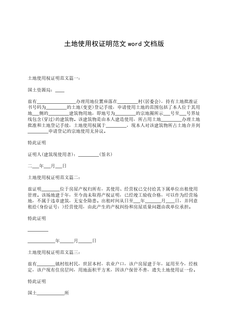 土地使用权证明范文篇三:兹有________镇村组村民,世居本村,农业户口,该户房屋建于年,延用至今,经核定,该户现有住房层间,用地面积平方米,因该户保管不善,遗失土地使用证一份。