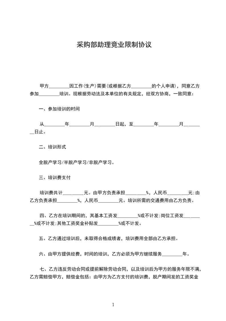 怎么写采购部助理竞业限制协议