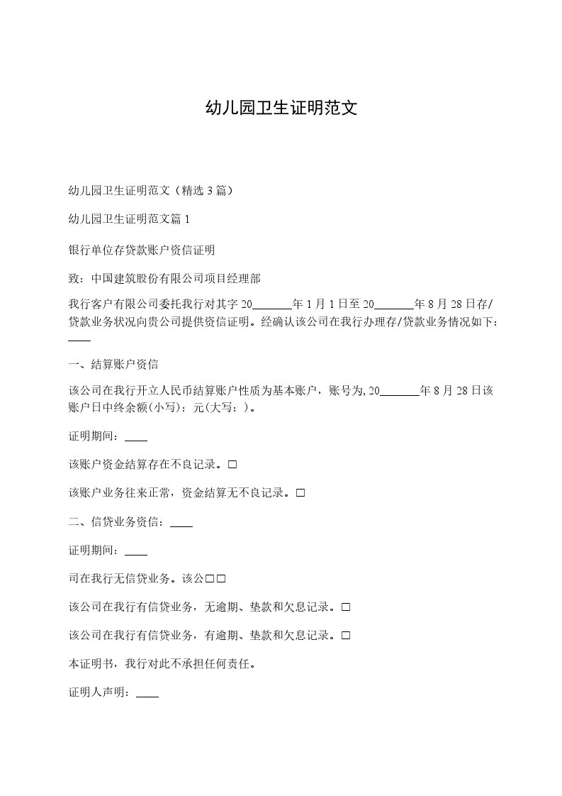 幼儿园卫生证明范文篇1银行单位存贷款账户资信证明