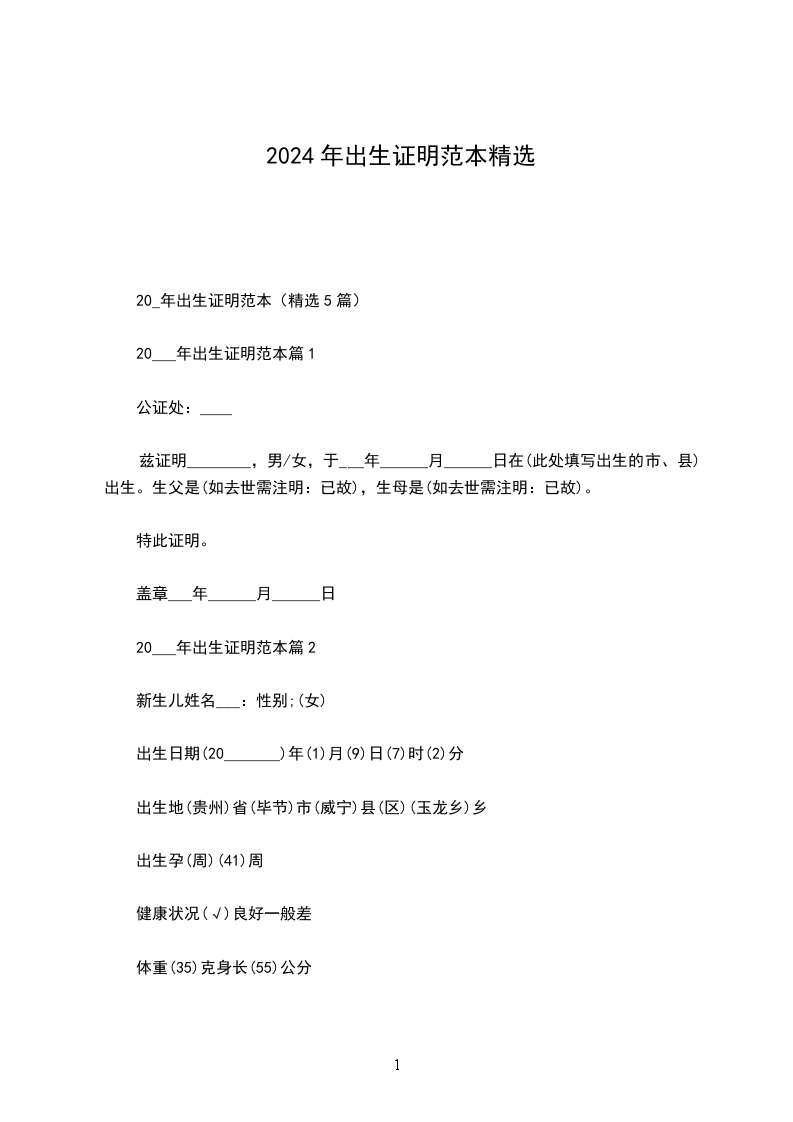 20_______年出生证明范本篇2