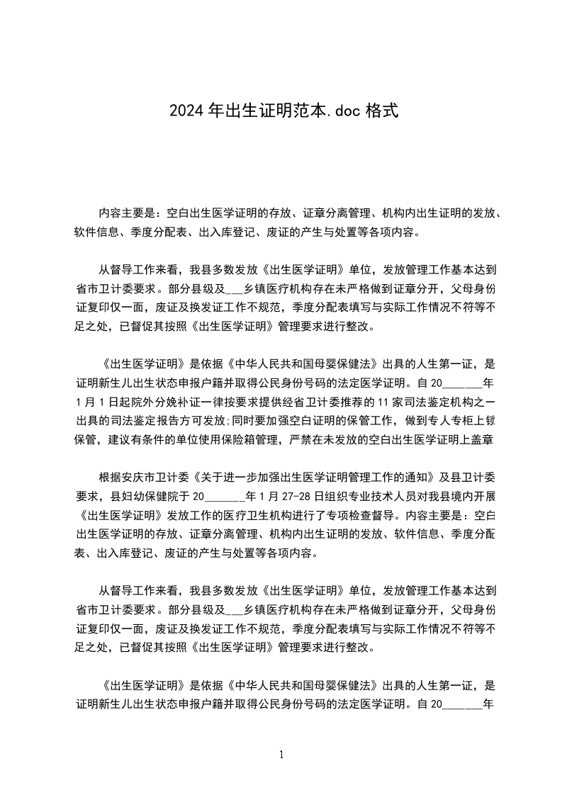 从督导工作来看,我县多数发放《出生医学证明》单位,发放管理工作基本达到省市卫计委要求。部分县级及___乡镇医疗机构存在未严格做到证章分开,父母身份证复印仅一面,废证及换发证工作不规范,季度分配表填写与实际工作情况不符等不足之处,已督促其按照《出生医学证明》管理要求进行整改。