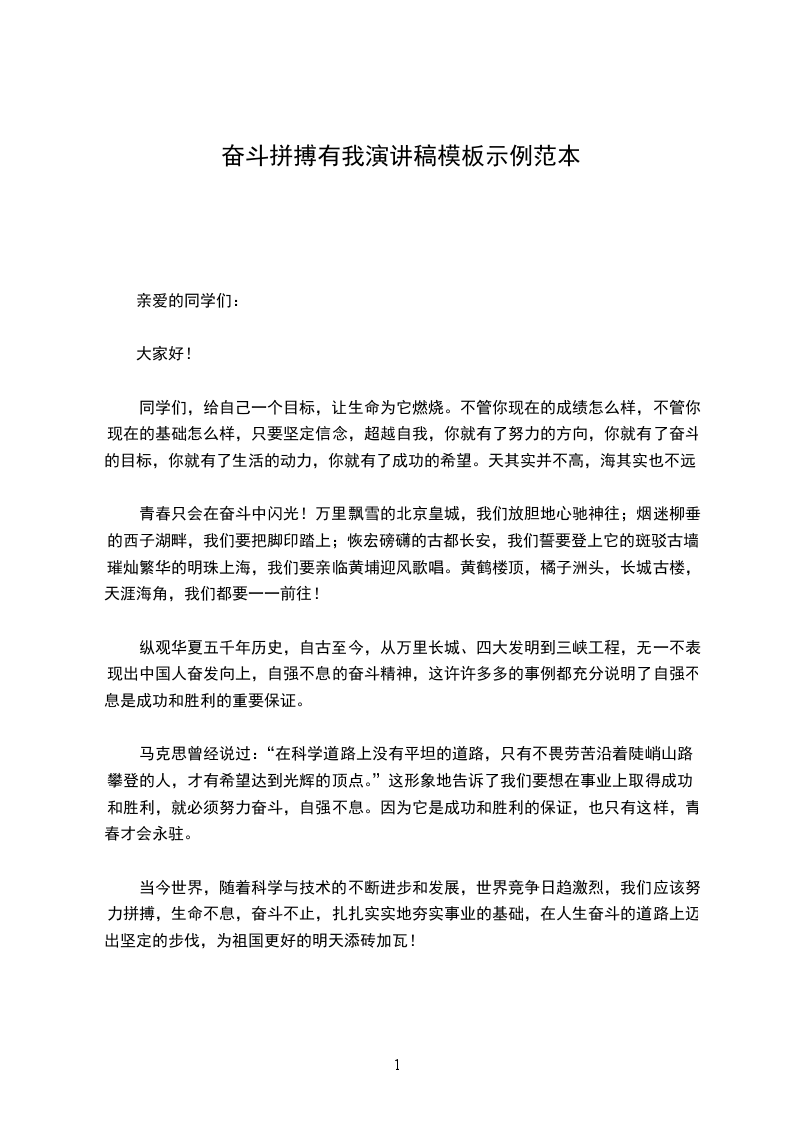我是___,很高兴在这和大家见面,也荣幸自己能够在这里发表演讲,感谢你们的支持,让我有这个勇气站在这里跟你们分享今天的演讲。那今天我所要演讲的是《拼搏让人生绚丽》。