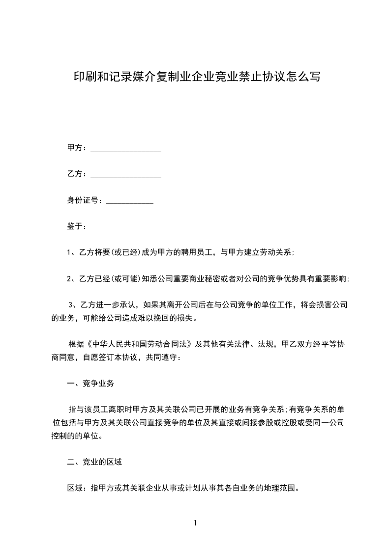 区域:指甲方或其关联企业从事或计划从事其各自业务的地理范围。