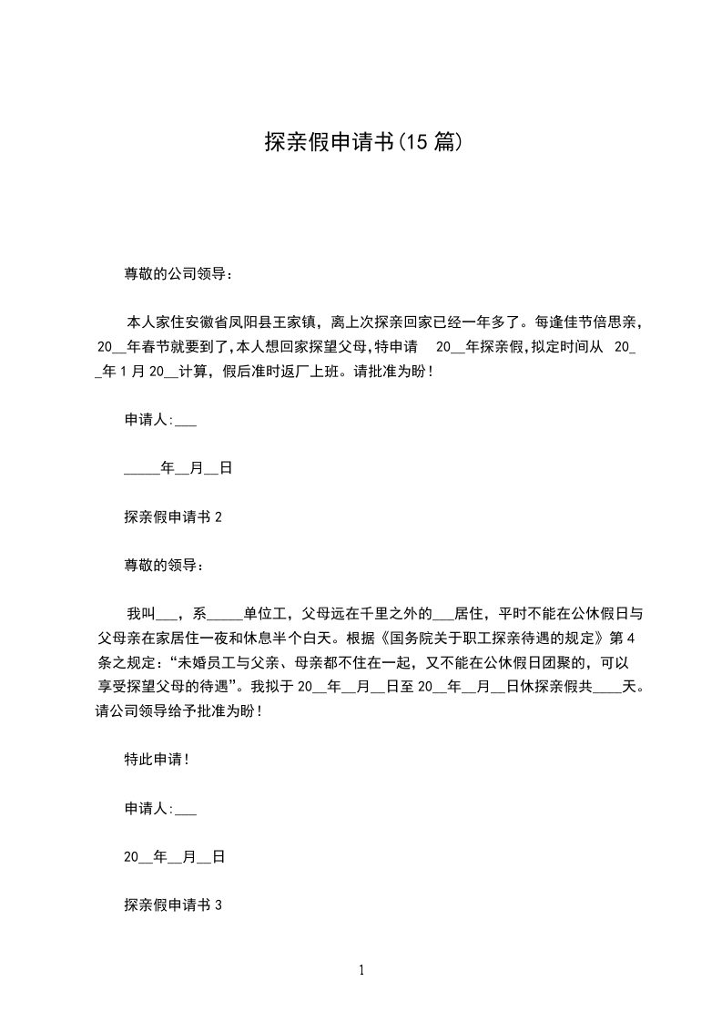 探亲假申请书15
