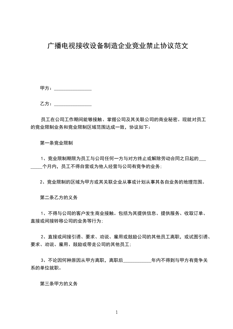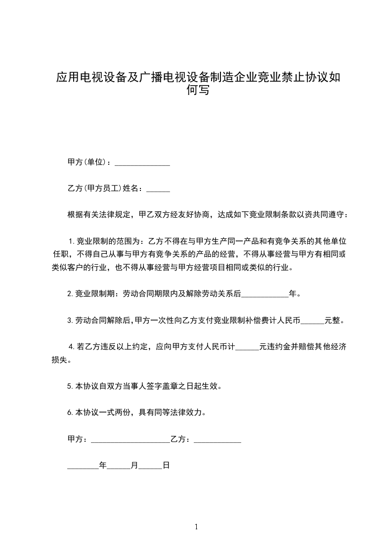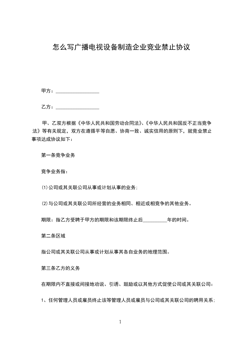 怎么写广播电视设备制造企业竞业禁止协议