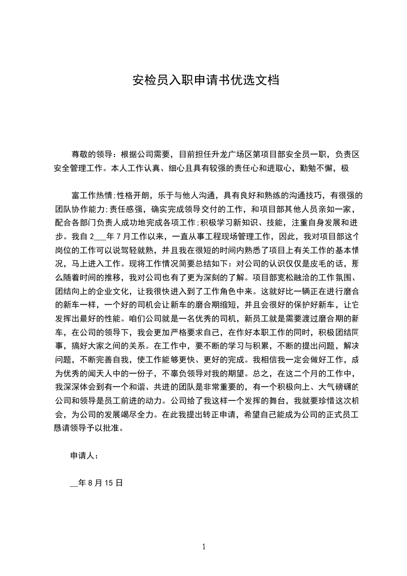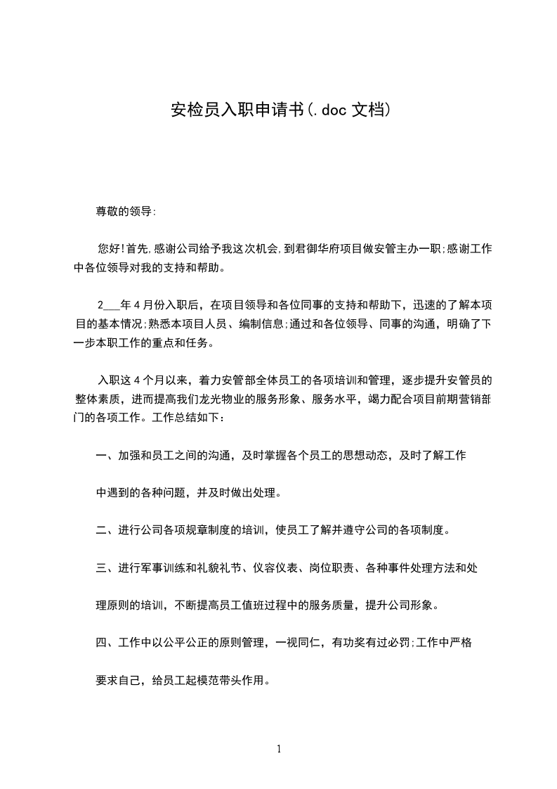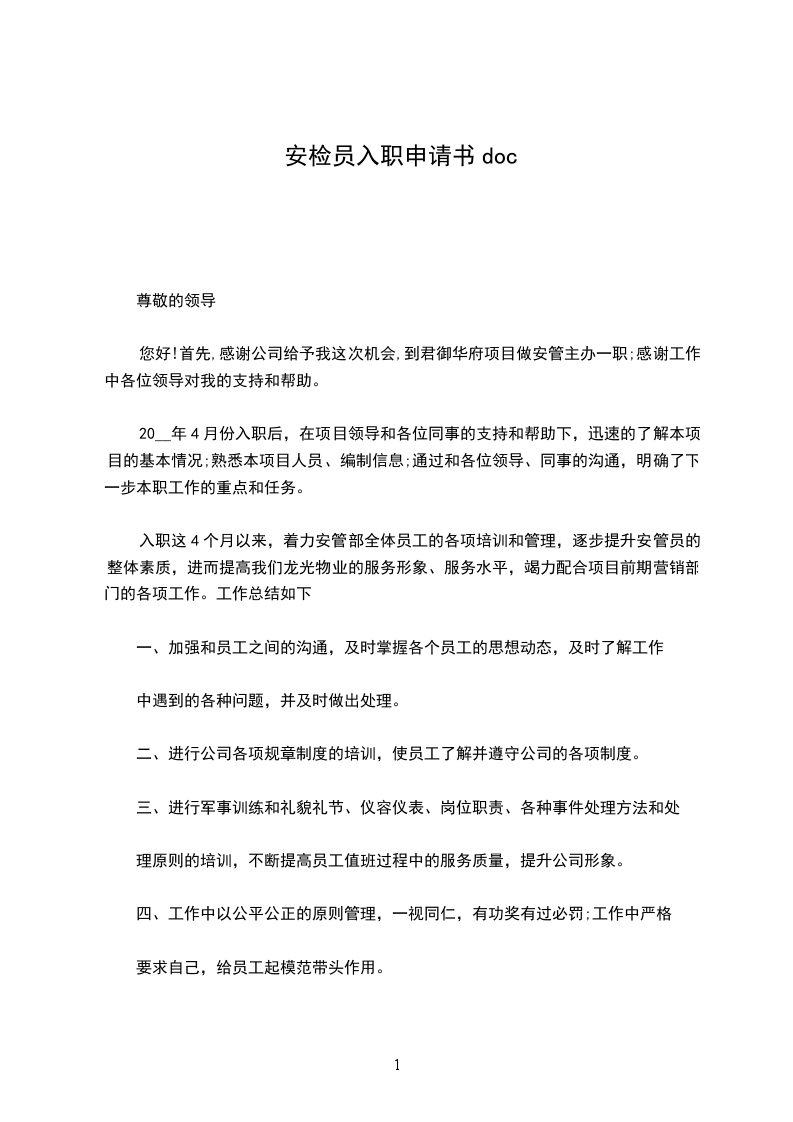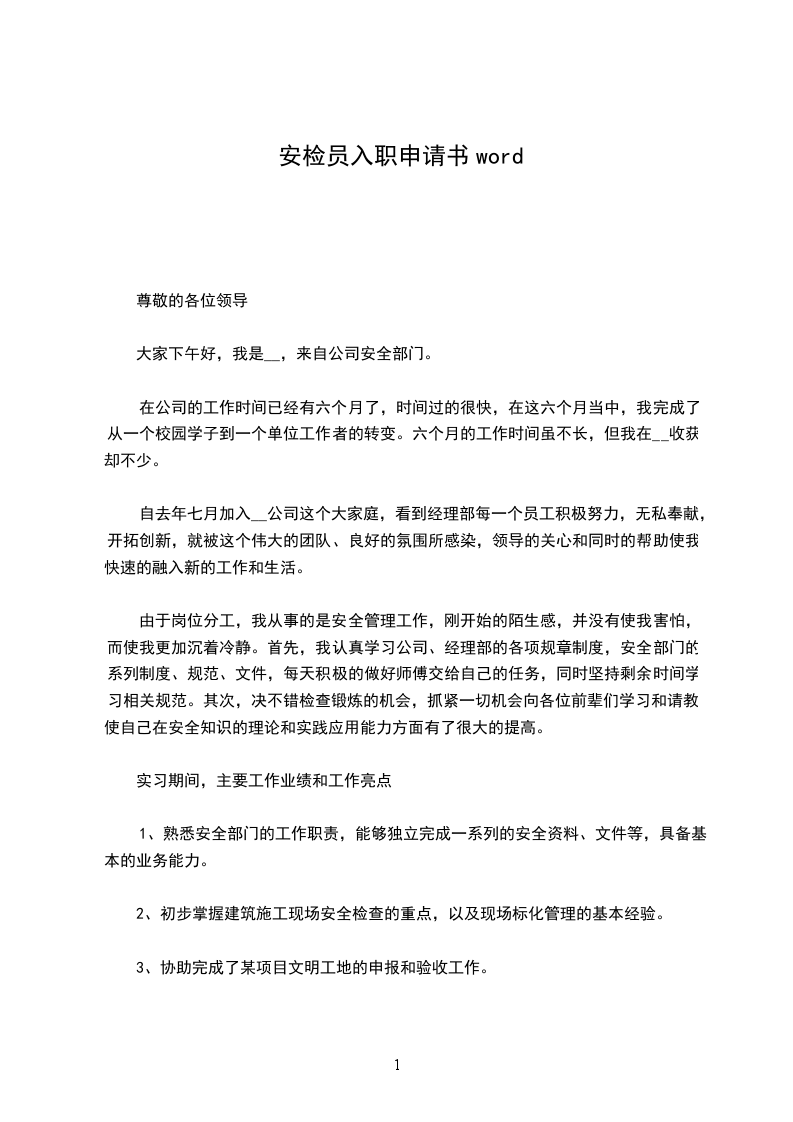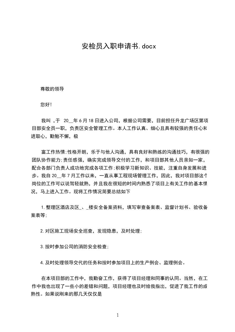 我叫 ,于20__年6月18日进入公司,根据公司需要,目前担任升龙广场区第项目部安全员一职,负责区安全管理工作。本人工作认真、细心且具有较强的责任心和进取心,勤勉不懈,极