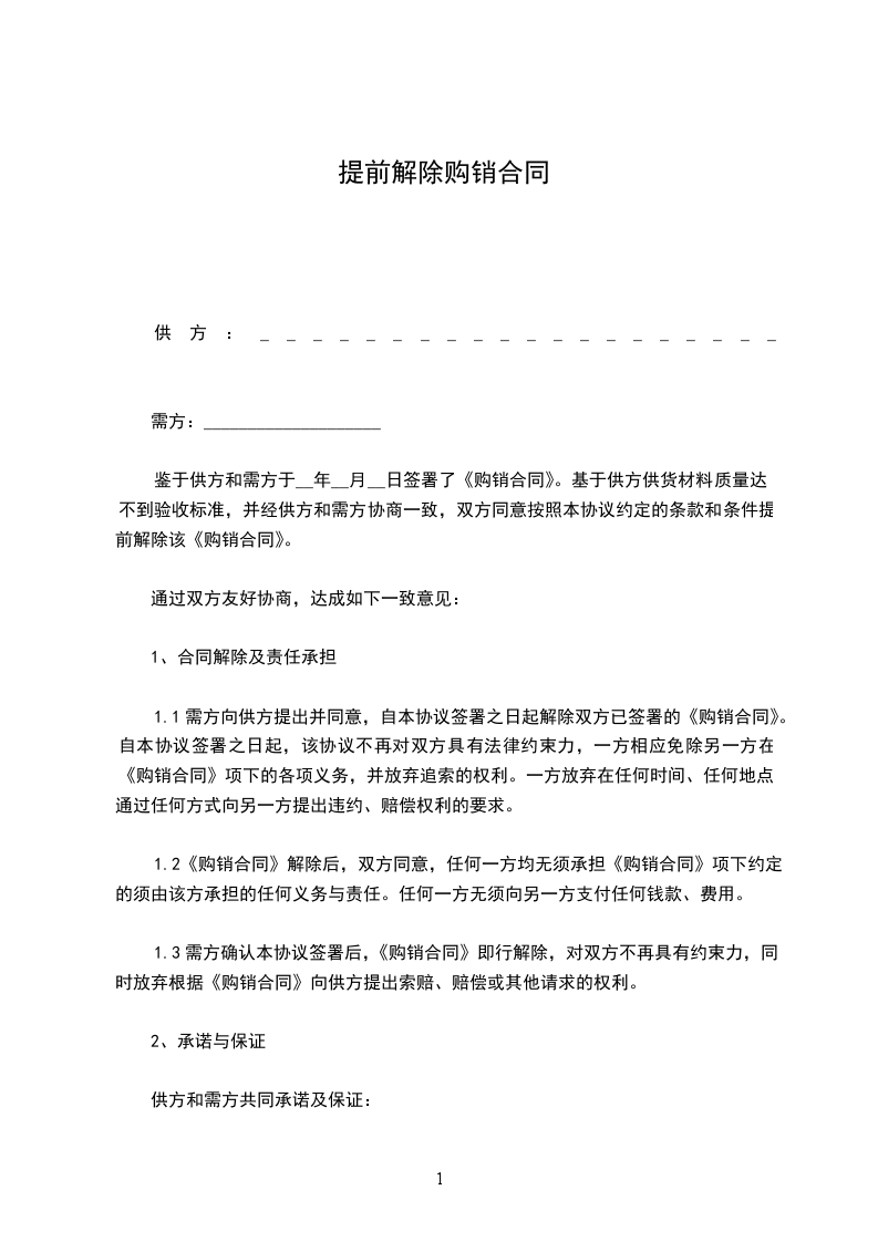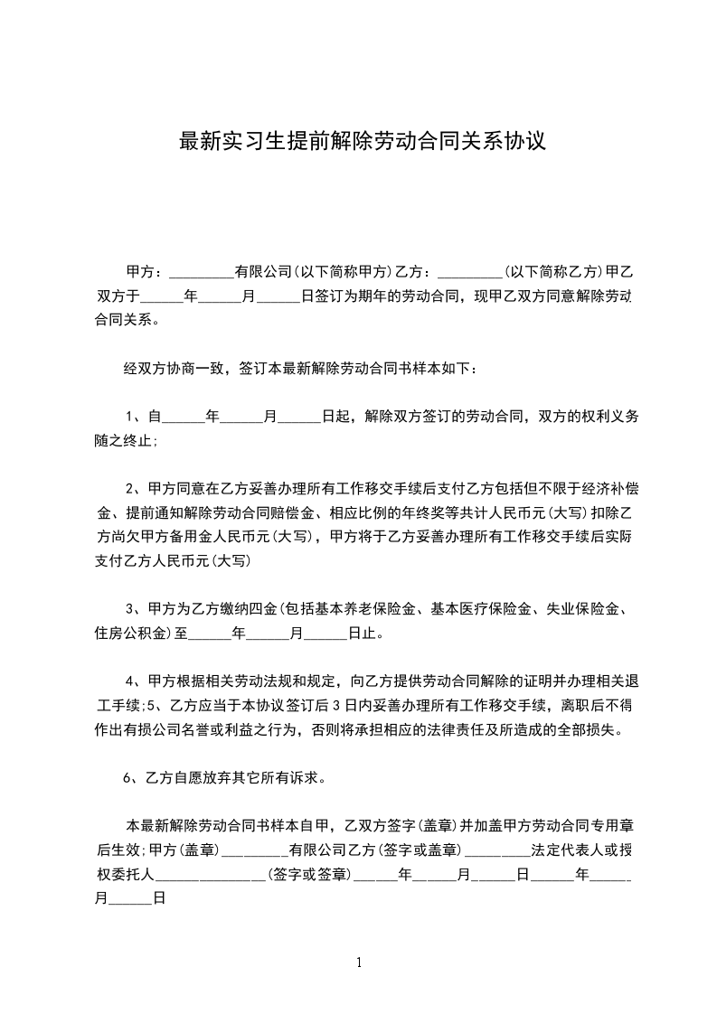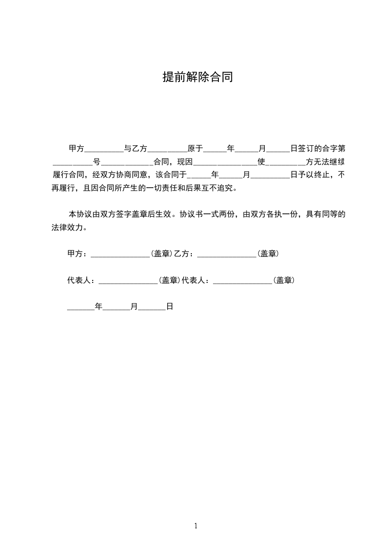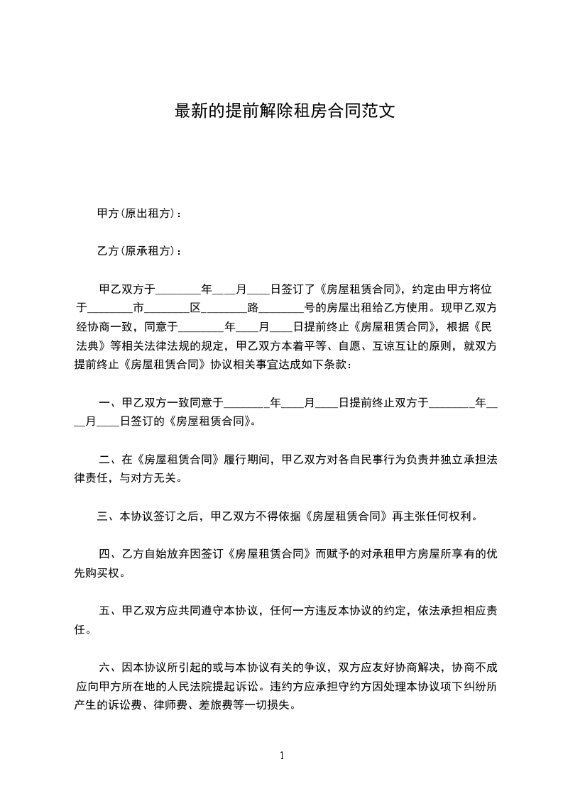 一、甲乙双方一致同意于________年____月____日提前终止双方于________年____月____日签订的《房屋租赁合同》。