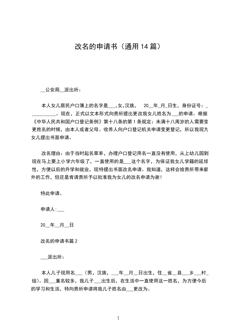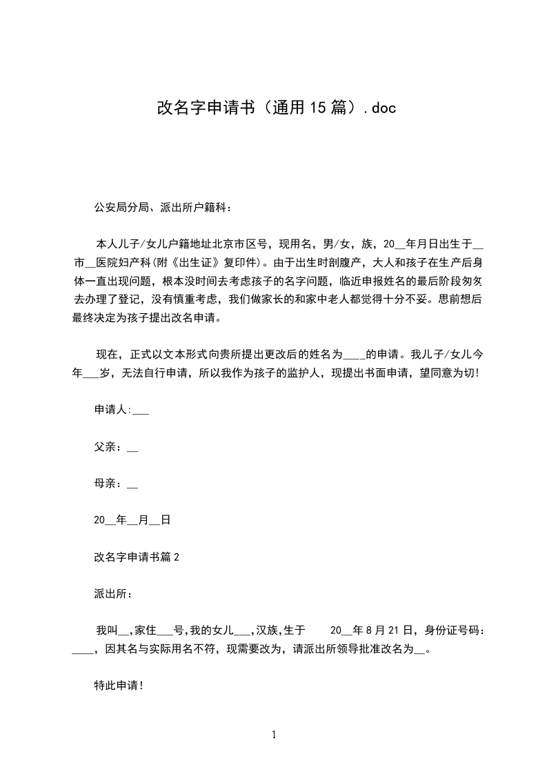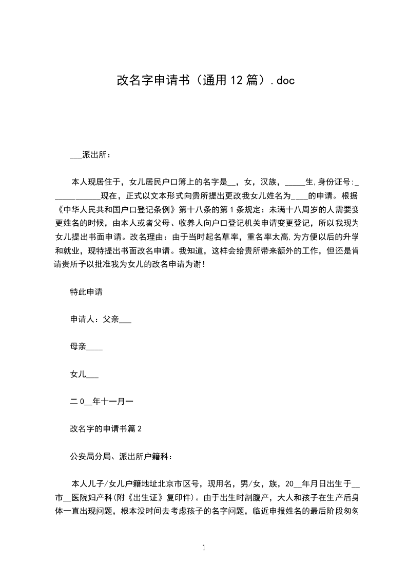 本人女儿居民户口簿上的名字是___,20__年_月__日生。由于当时起名草率,没有考虑到重名现象,给生活带来很多不便。根据《中华人民共和国户口登记条例》第十八条的第1条规定:未满18周岁的.人需要变更姓名的时候,由本人或者父母、收养人向户口登记机关申请变更登记。现在,我正式以文本形式向贵所提交更改我女儿姓名为___的申请。
