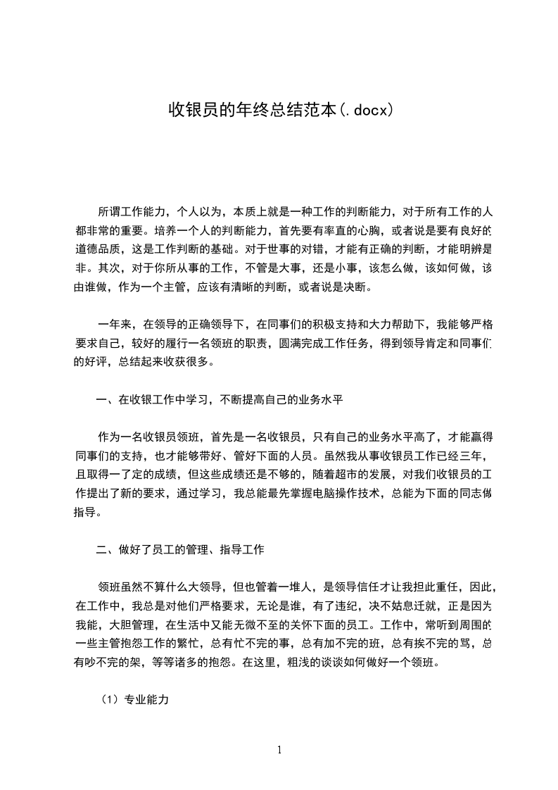 这一年,虽然工作取得了一定的成绩,但还有很多发展的空间,我相信,只要我和我们收银员一起努力,一定会把工作做得更好。