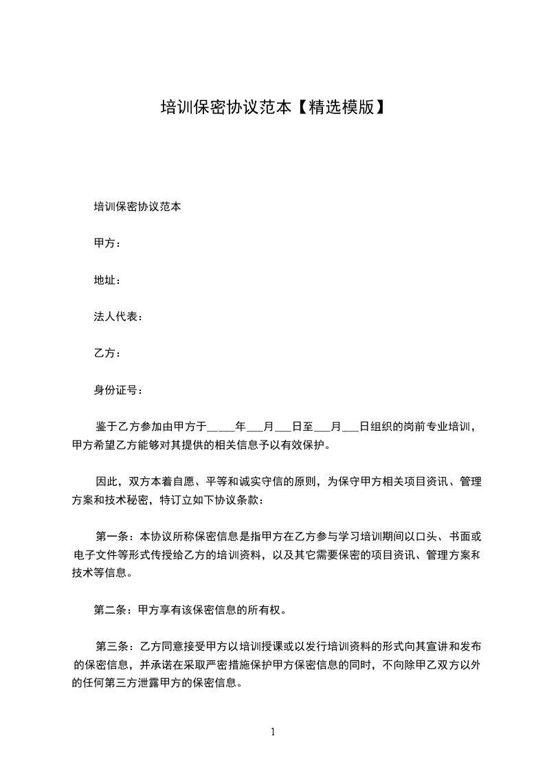 鉴于乙方参加由甲方于________年________月________日至________月________日组织的岗前专业培训,甲方希望乙方能够对其提供的相关信息予以有效保护。