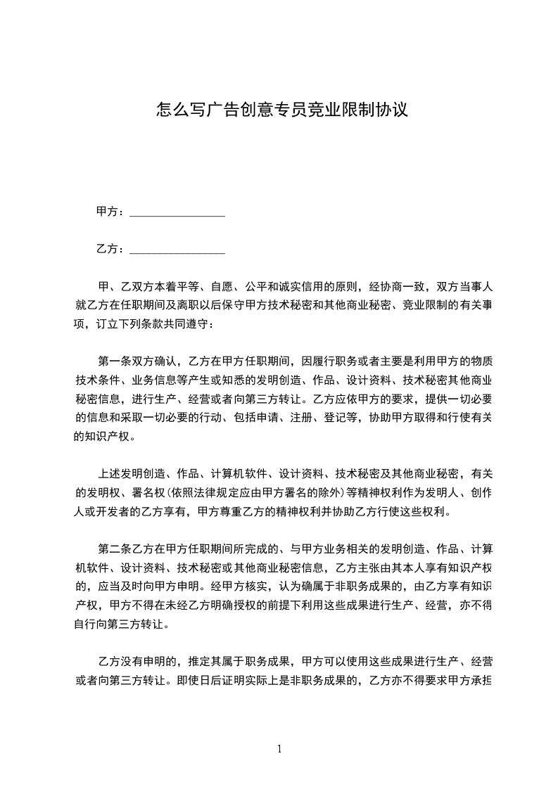 甲、乙双方本着平等、自愿、公平和诚实信用的原则,经协商一致,双方当事人就乙方在任职期间及离职以后保守甲方技术秘密和其他商业秘密、竞业限制的有关事项,订立下列条款共同遵守: