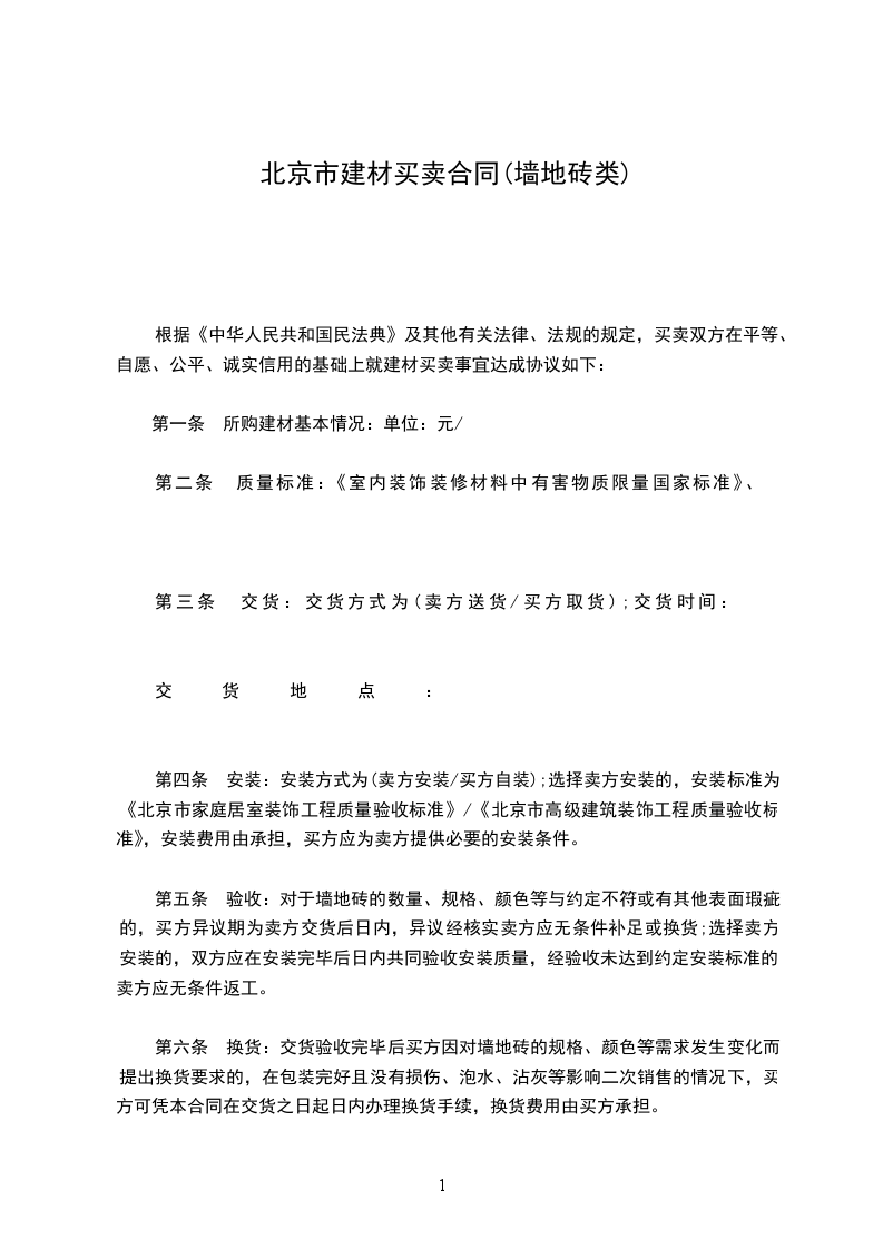 根据《中华人民共和国民法典》及其他有关法律、法规的规定,买卖双方在平等、自愿、公平、诚实信用的基础上就建材买卖事宜达成协议如下: