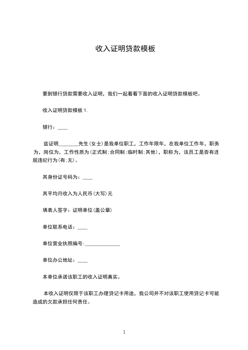 要到银行贷款需要收入证明,我们一起看看下面的收入证明贷款模板吧。