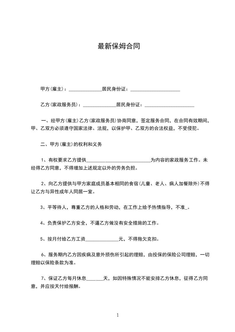 2、乙方要全心全意负责好小孩的安全,不得虐待小孩子,不得恐吓小孩,对孩子要尽可能有耐心。乙方不得与其他人员(如乙方熟人、小区其他保姆、小区保安等)随意谈论甲方的家庭情况。