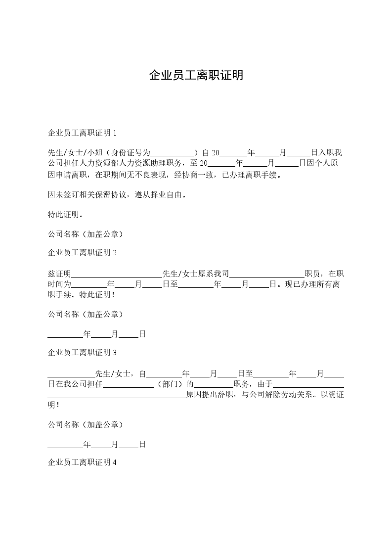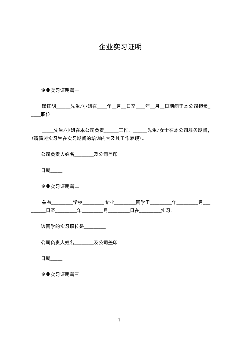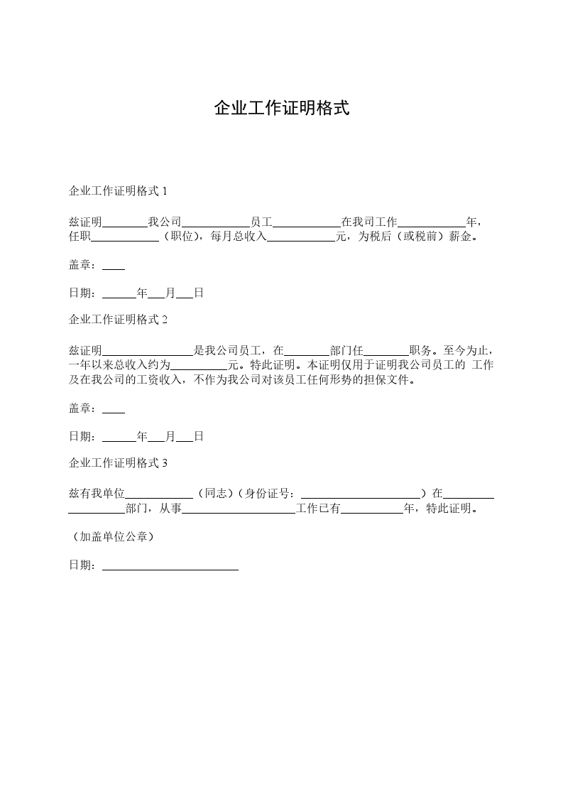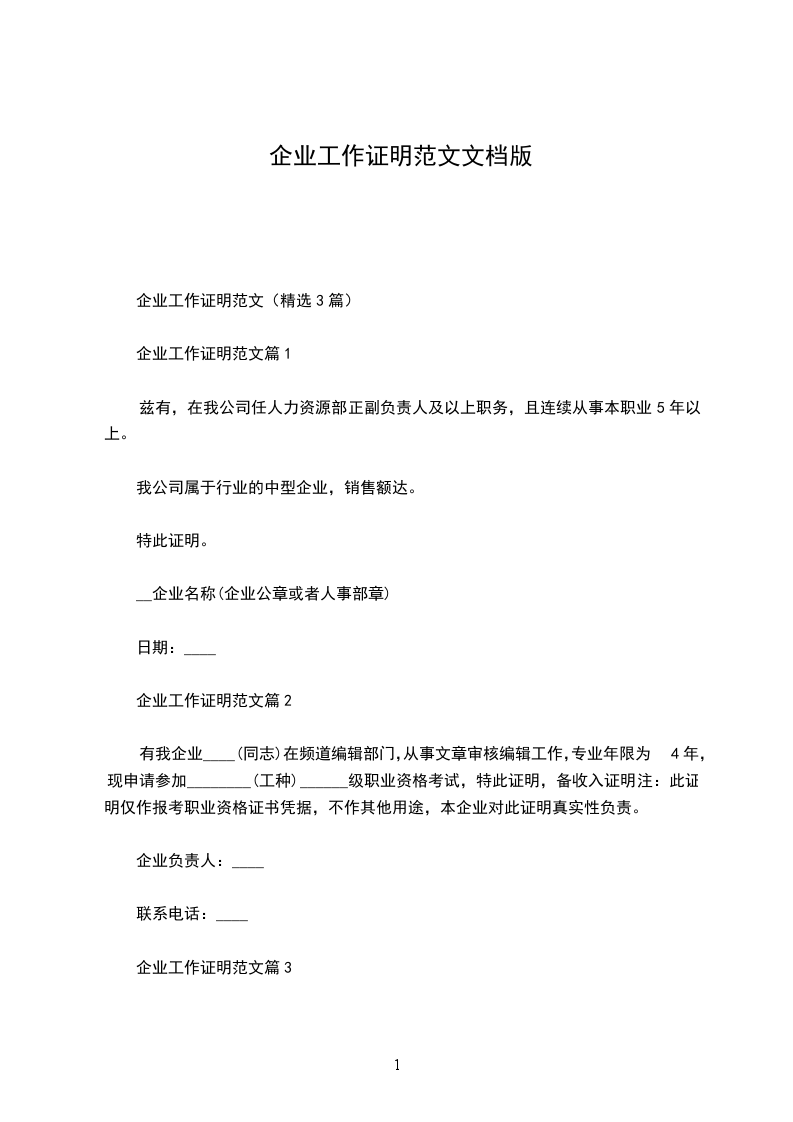 企业工作证明1