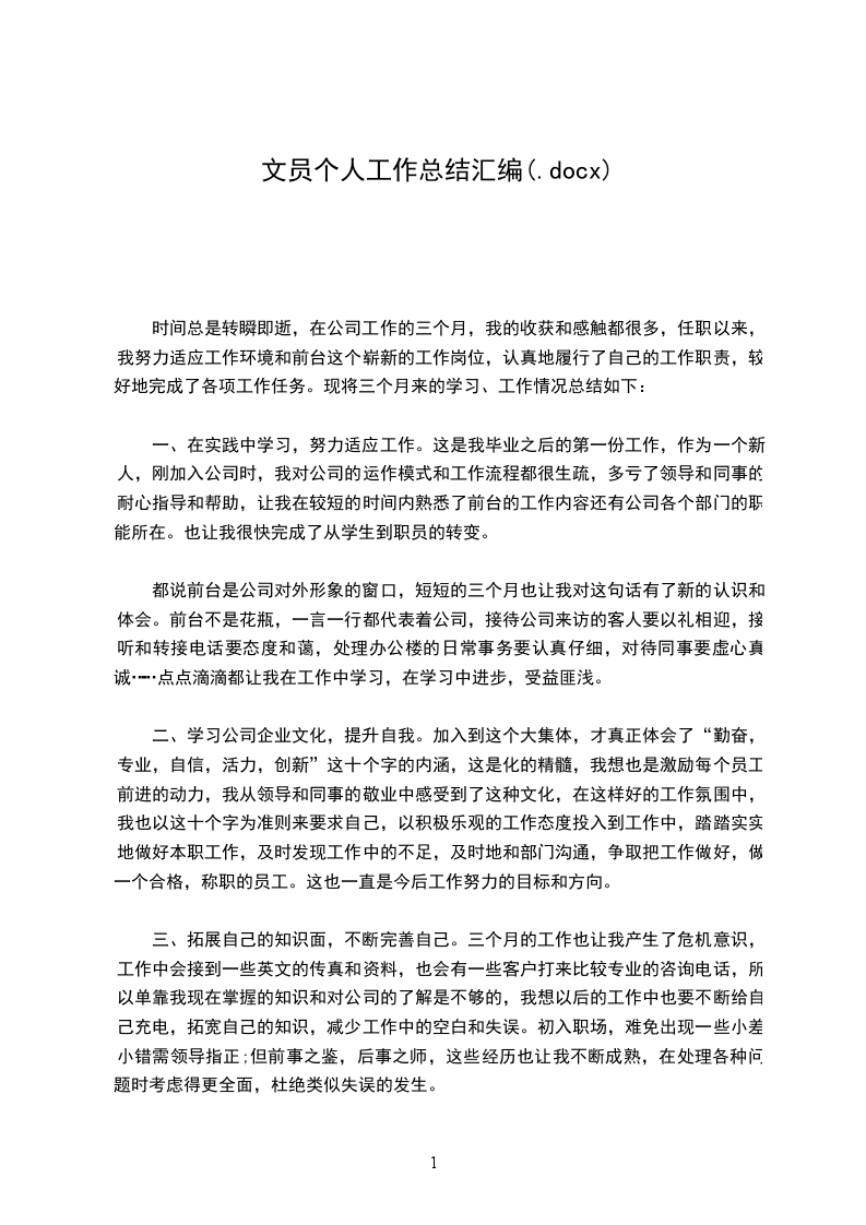 在公司不断的发展中,我的工作能力和个人能力都得到了很大的提高,这是我一直以来不断的成长得到的成果,也和公司的领导,同事帮助是分不开的,相信自己在以后的工作中一定会做到最好。公司的发展和自己的发展息息相关,这一点觉悟我还是有的,所以我会一直坚持努力的工作下去,我相信我自己一定能够顺利的完成公司给我的工作。虽没有轰轰烈烈的战果,但也算经历了一段不平凡的考验和磨砺。
