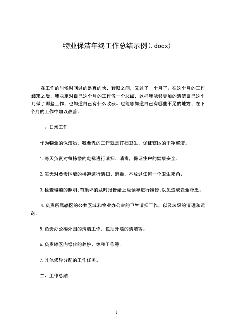 作为物业的保洁员,我要做的工作就是打扫卫生,保证辖区的干净整洁。