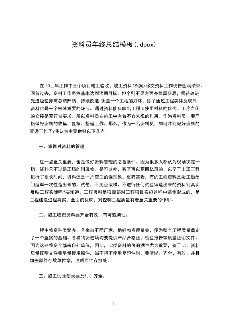 在20__年工作中三个项目竣工验收、竣工资料(档案)移交资料工作便告圆满结束。回首过去,资料工作虽然基本达到预期目标,但个别不足方面亦急需反思,需待改进,先进经验亦需总结归纳,持续改进;衡量一个工程的好坏,除了通过工程实体反映外,资料也是一个极其重要的环节。通过资料能反映出工程所使用材料的优劣、工序之间的交接是否符合要求。所以资料员在施工中有着不容忽视的作用。作为资料员,要严格做好资料的收集、复核、整理工作。那么,作为一名资料员,如何才能做好资料的管理工作了?我认为主要做好以下几点