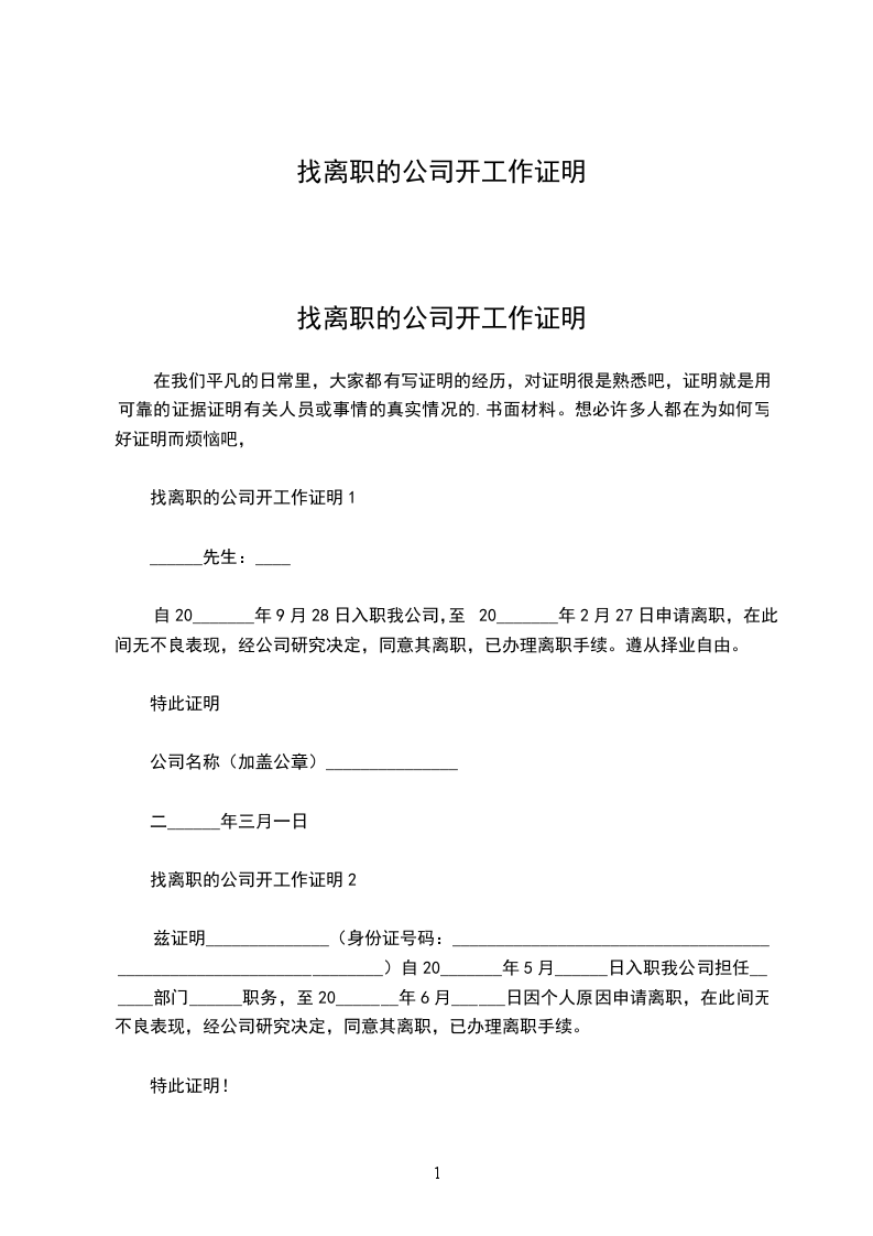 找离职的公司开工作证明1______先生:____