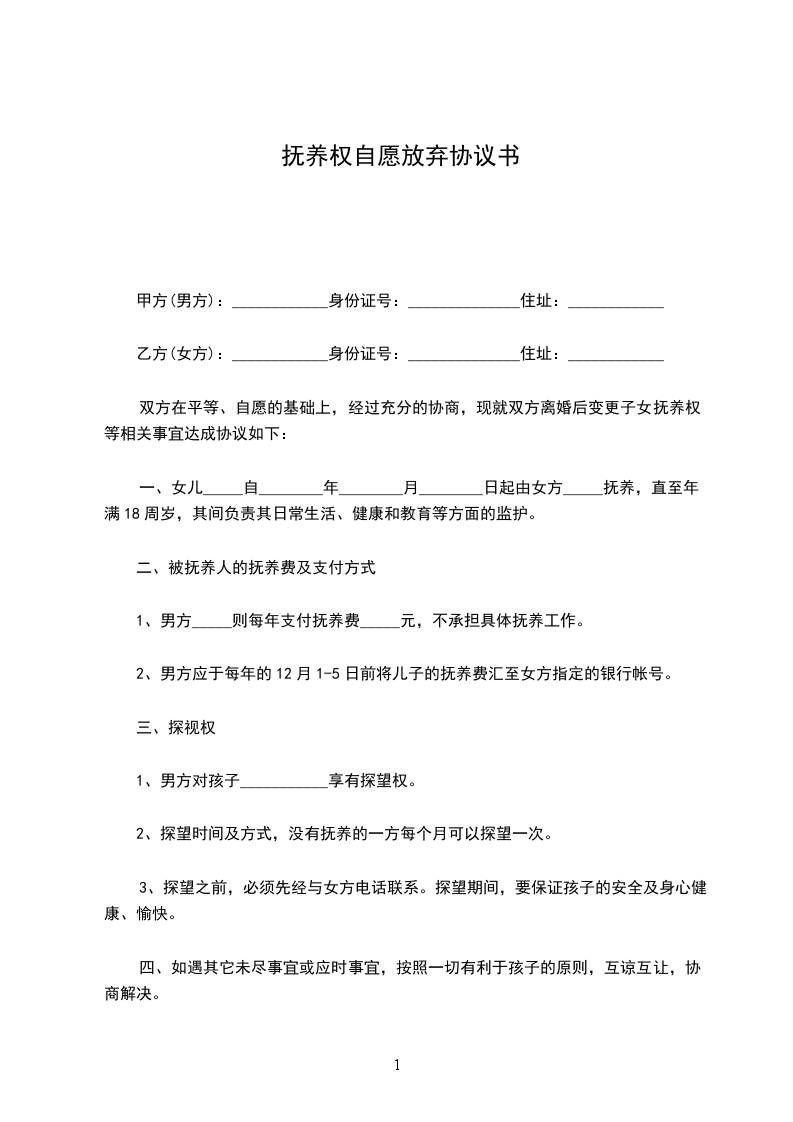 1、小孩__________由乙方负责抚养。