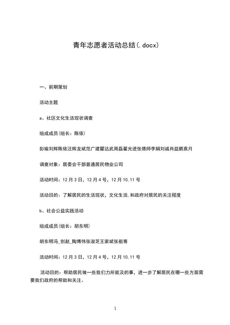 活动目的:帮助居民做一些我们力所能及的事,进一步了解居民在哪一些方面需要我们政府的帮助和关注。