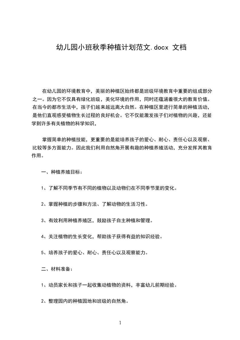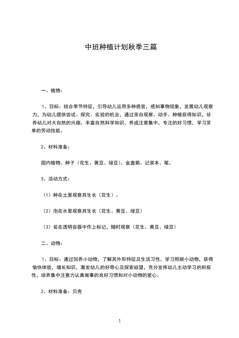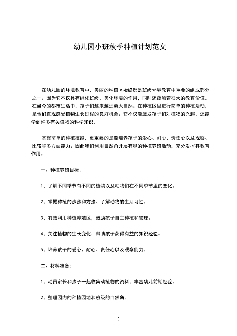 幼儿园小班秋季种植计划篇三