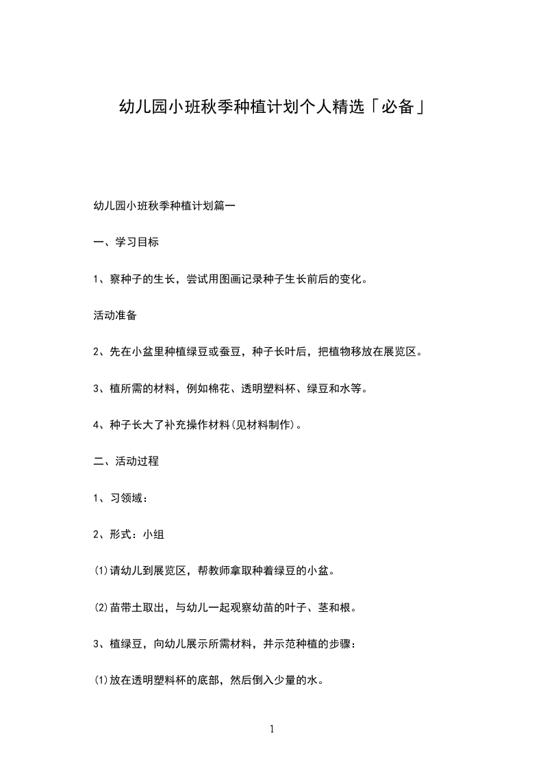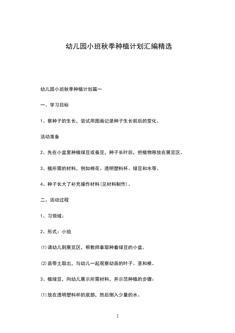 幼儿园小班秋季种植计划篇一