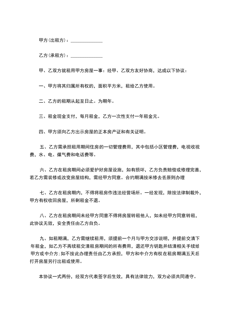 出租方:____________(以下简称甲方)