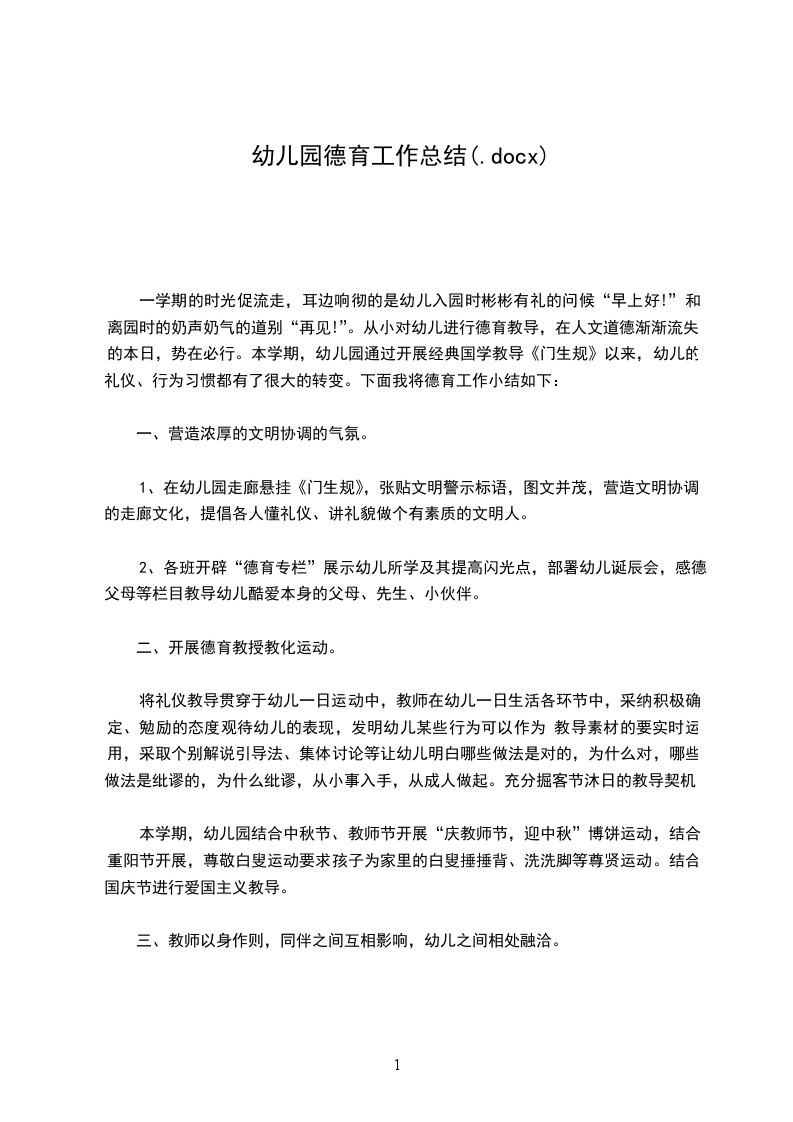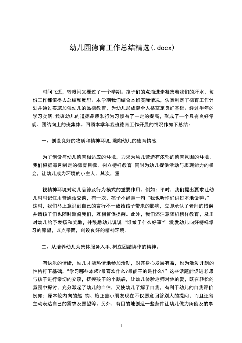 时间飞逝,转眼间又要过了一个学期。孩子们的点滴进步凝集着我们的汗水,每份工作都值得去总结和反思。本学期我们结合本班实际情况,认真制定了德育工作计划并通过实施加强幼儿的品德教育,为幼儿形成健全人格奠定良好基础。经过半年的学习实践,我班幼儿的道德品质和行为习惯有了一定的提高,形成了一个具有良好常规、团结向上的班集体。回顾本学年我班德育工作开展的情况作如下总结:
