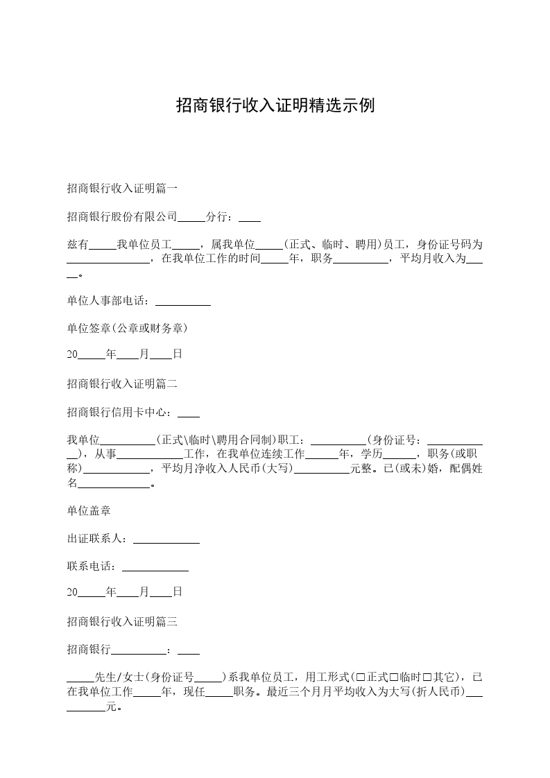 招商银行收入证明篇一