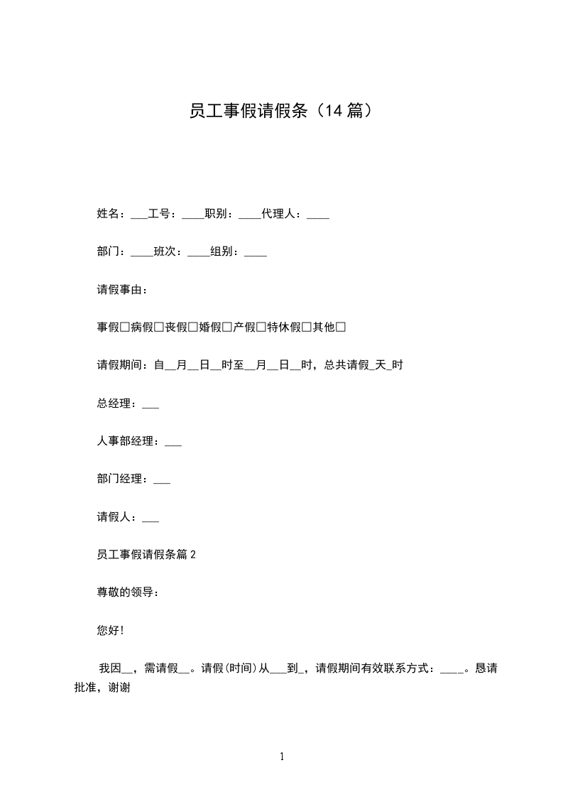 请假类别:□公假(产假、婚假、丧假)□事假□病假(一天以上需医师证明)□调休□其他(请说明)