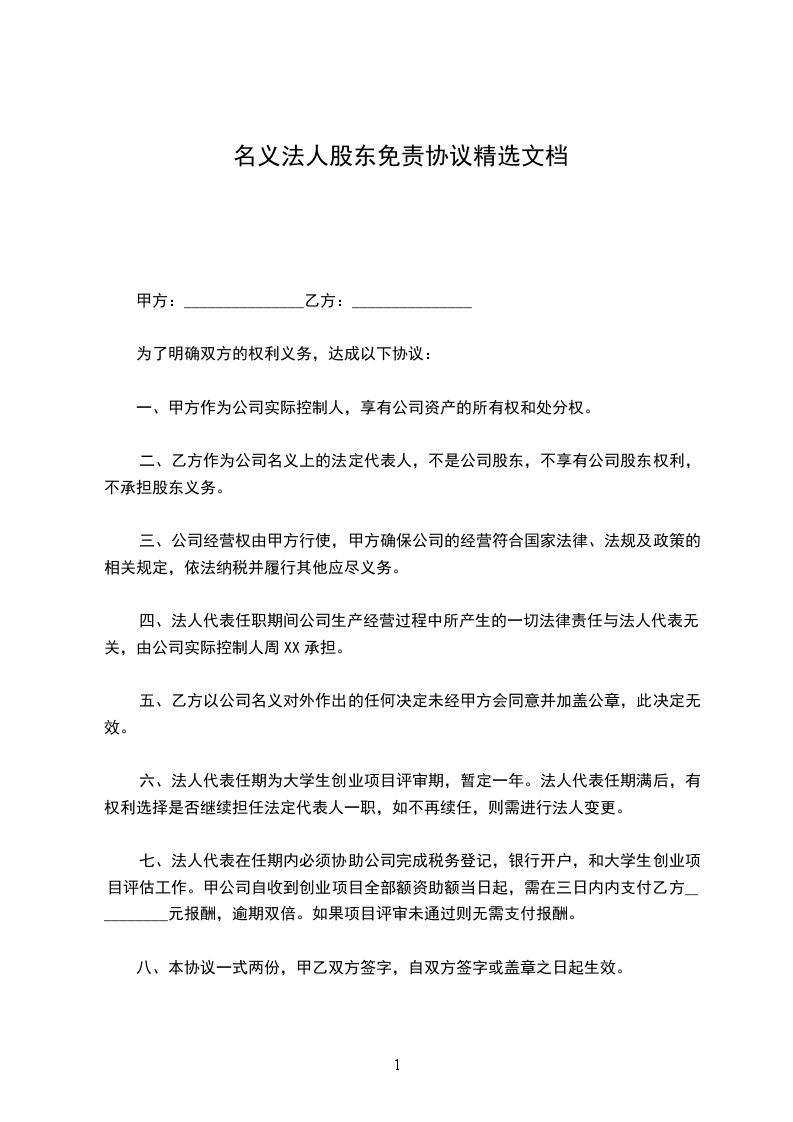 二、乙方作为公司名义上的法定代表人,不是公司股东,不享有公司股东权利,不承担股东义务。