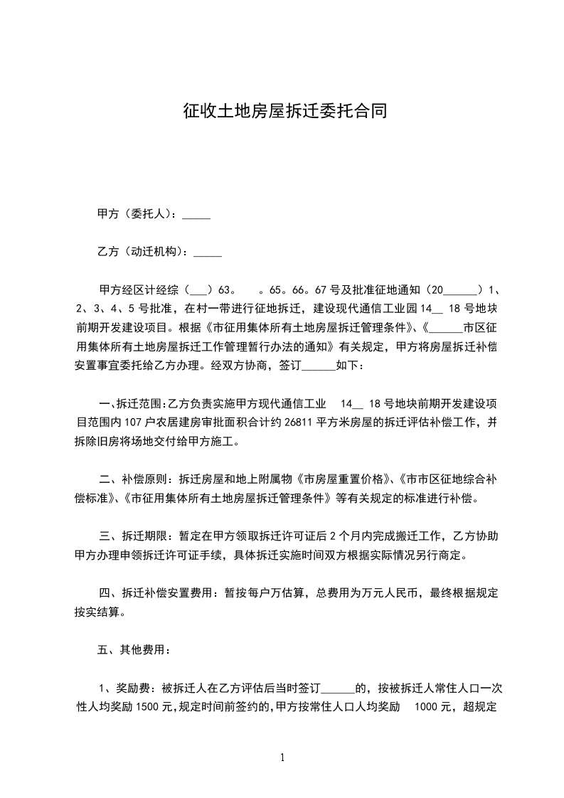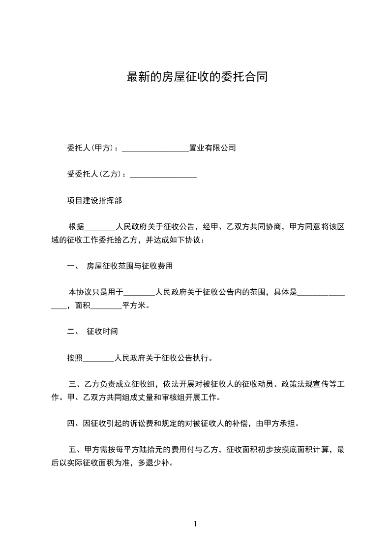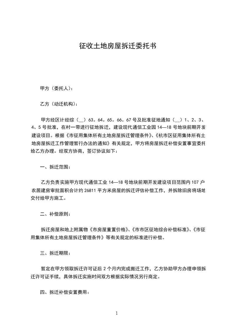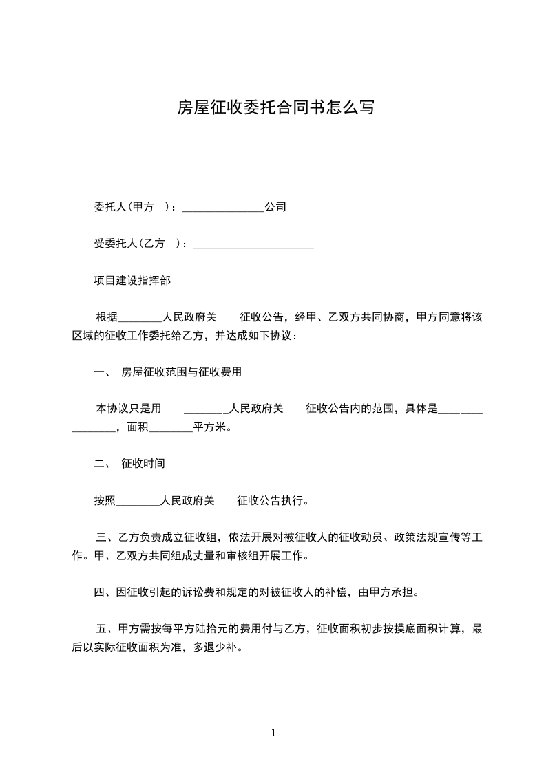 根据________人民政府关于征收公告,经甲、乙双方共同协商,甲方同意将该区域的征收工作委托给乙方,并达成如下协议: